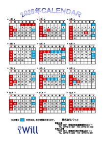(株)ウィル 2025年度営業カレンダー ↑からダウンロードできます