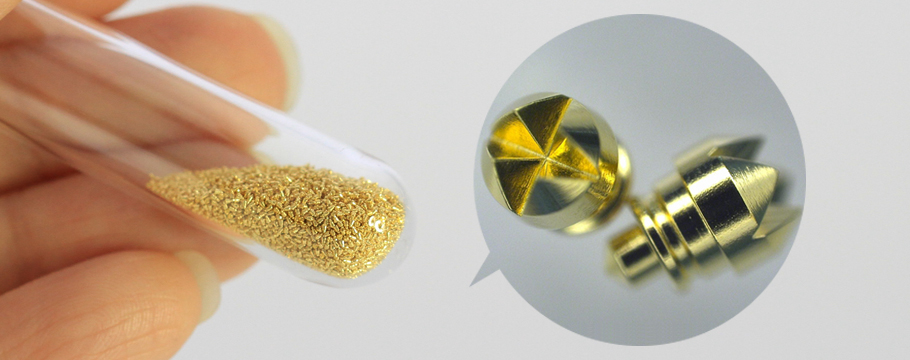 材質:SK4, 表面処理:Niメッキ→金メッキ, 用途:電子部品, 大きさ:φ0.35mm×0.5mm