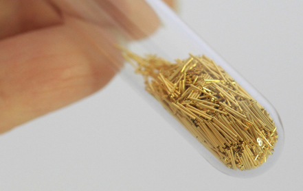 Material: SK4, Surface treatment: Ni plating → Gold plating, Application: Electronic components, Size: φ0.35 mm × 0.5 mm