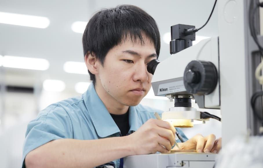 結婚を機に転職を考えるようになり、自宅から通いやすい職場をインターネットで検索していてホームページを見つけました。それまで当社のことは知りませんでしたが、〝超微細〟〝超精密〟というワードがとても気になったのが応募のきっかけです。もうひとつ、ポイントになったのは将来的な安心感です。当社では半導体検査に使用されるプレーブ(部品)を製造しており、まだまだ発展していく業界で、この先も安定している仕事とのビジョンが持てた点も魅力でした。